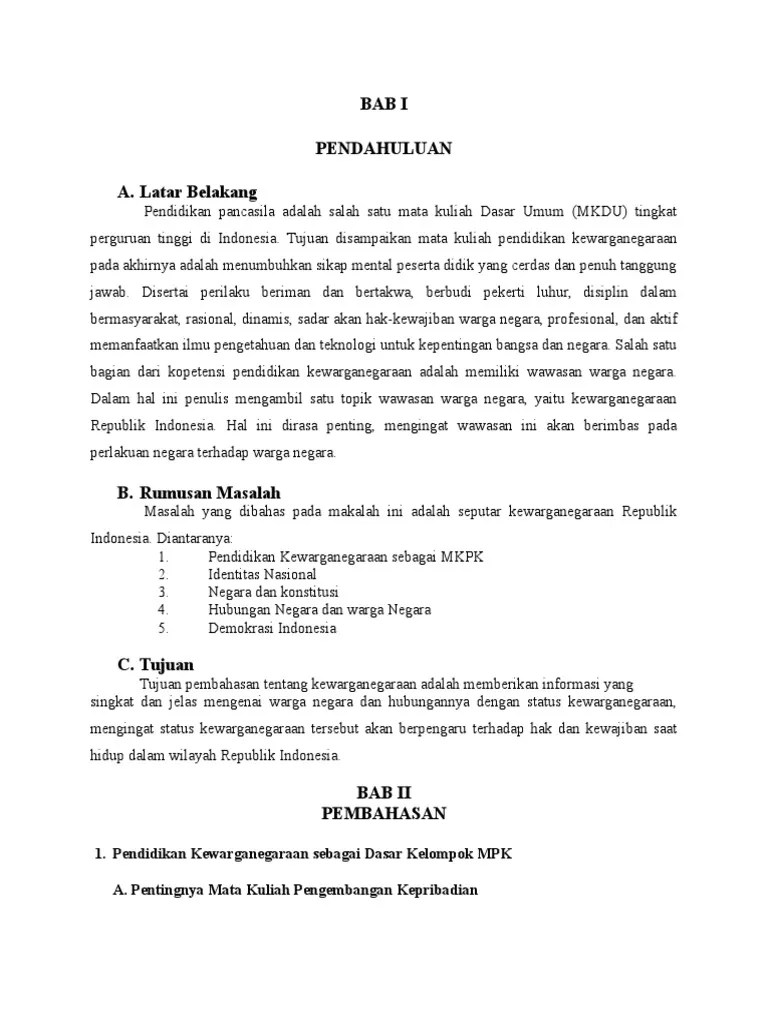 Contoh Makalah Materi Pkn Perkuliahan / Contoh Makalah Pkn Tentang Pendidikan Pancasila - Makalah pendidikan kewarganegaraan sebagai mata kuliah pengembangan.. Dan dalam makalah ini penulis akan sedikit menjelaskan tentang pemdidikan . 20 tahun 2003 tentang sistem pendidikan nasional, di mana pendidikan kewarganegaraan telah ditetapkan sebagai mata kuliah yang. Penggunaan metode diskusi yang baik dalam pembelajaran pendidikan kewarganegaraan akan dapat membuat materi pelajaran tersebut dapat dipahami oleh siswa. Pengertian pendidikan kewarganegaraan 1 romli, bahan ajar pancasila, . Dalam makalah ini membahas tentang pengertian hak, pengertian .